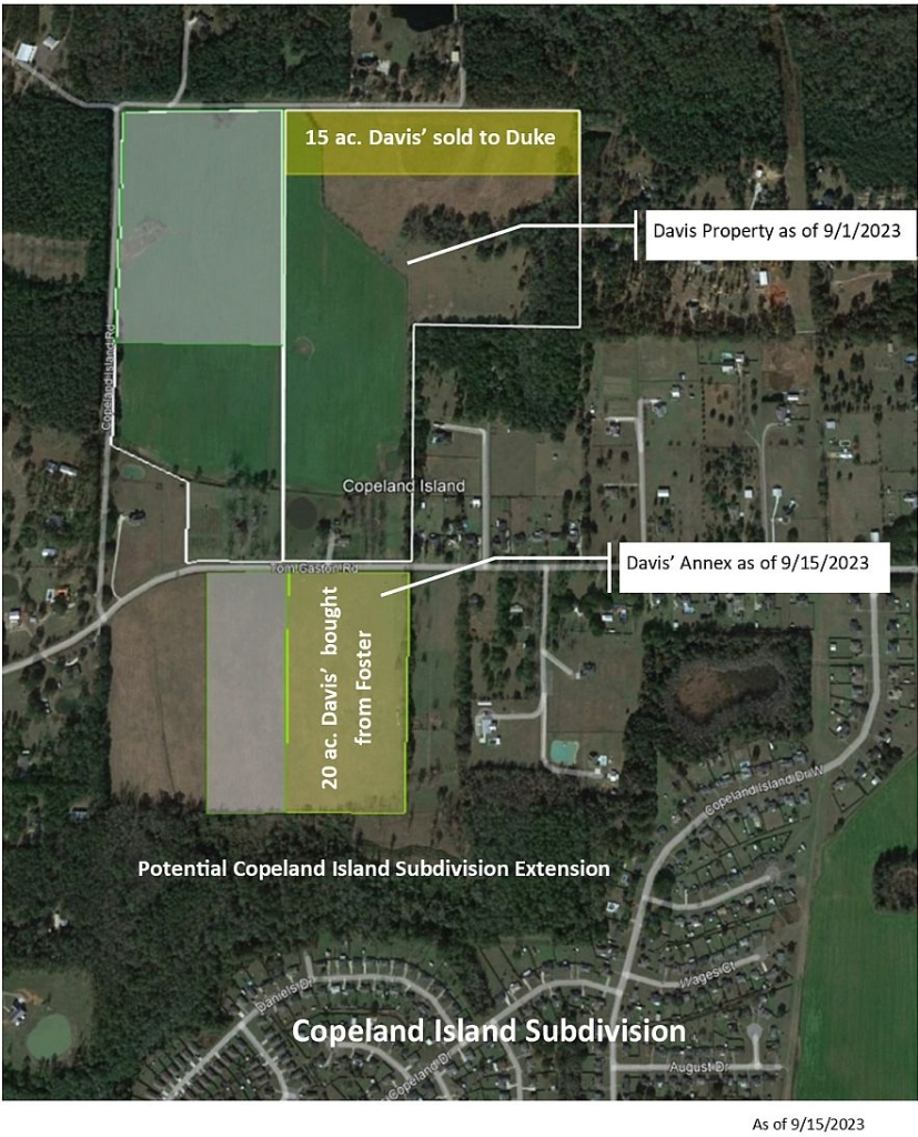 Below is a screen clip of property lines after the Estate was probated and before the sale of 15 acres along the north property line to Leslie Duke and the purchase of 20 acres from Neil Foster across the road.